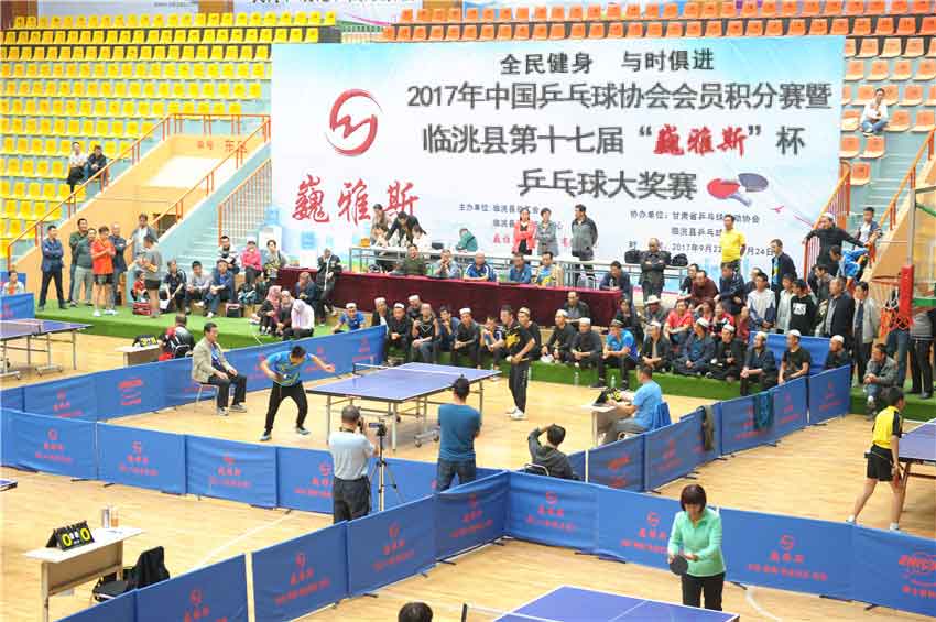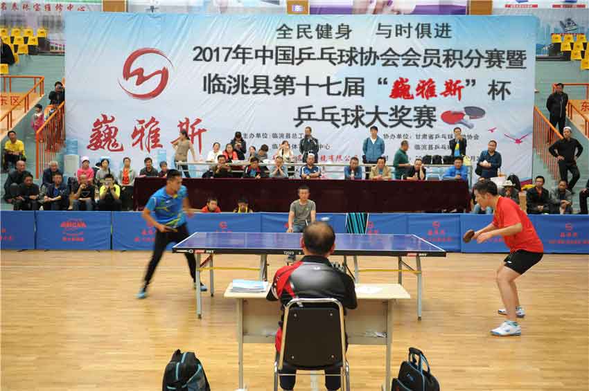 2017年中國(guó)乒乓球協(xié)會(huì)會(huì)員積分賽暨第十七屆臨洮縣“巍雅斯”杯乒乓球大獎(jiǎng)賽,經(jīng)過(guò)三天緊張激烈的角逐,各個(gè)組別的男女團(tuán)體和單打別名次全部產(chǎn)生。9月24日下午,進(jìn)行了本次比賽極為精彩的成年男子組冠亞軍決賽,并舉行了頒獎(jiǎng)儀式。