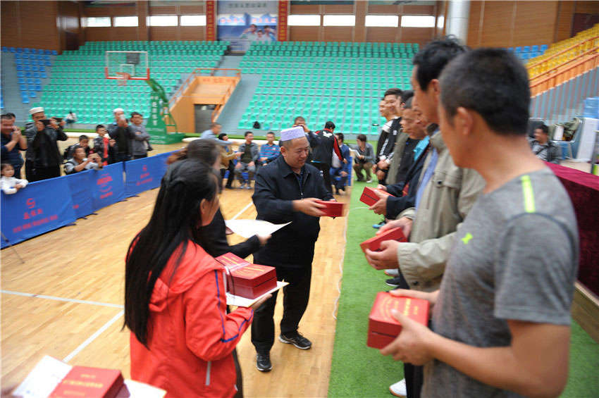 甘肅省乒乓球運(yùn)動(dòng)協(xié)會(huì)會(huì)長(zhǎng)韓力,甘肅省乒乓球運(yùn)動(dòng)協(xié)會(huì)副會(huì)長(zhǎng)、巍雅斯名表眼鏡有限公司董事長(zhǎng)裴正江,甘肅省乒乓球運(yùn)動(dòng)協(xié)會(huì)秘書長(zhǎng)宋建農(nóng),臨洮縣總工會(huì)常務(wù)副主席張國(guó)林、臨洮縣體育運(yùn)動(dòng)中心主任劉儉、臨洮縣總工會(huì)副主席劉艷,巍雅斯名表眼鏡有限公司總裁裴明偉,巍雅斯名表眼鏡有限公司副總裁裴明宏,廣河縣誠(chéng)德民族用品有限公司總經(jīng)理馬應(yīng)虎等領(lǐng)導(dǎo)出席閉幕式并為獲獎(jiǎng)運(yùn)動(dòng)員頒獎(jiǎng)。