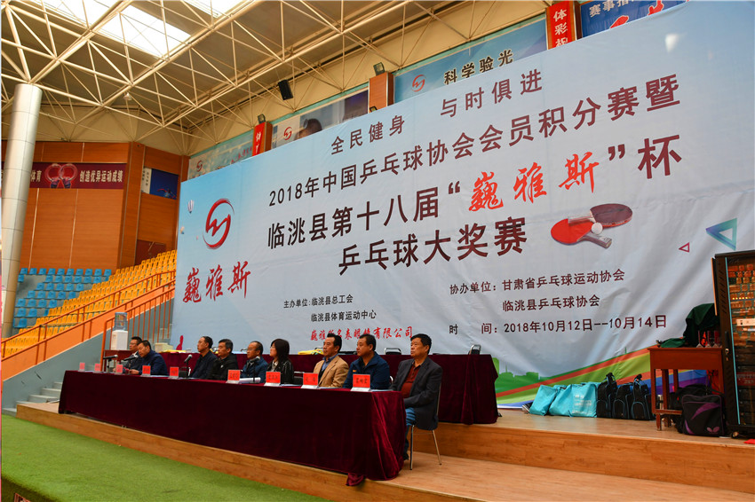2018年10月12日上午,由臨洮縣總工會、臨洮縣體育運動中心、巍雅斯名表眼鏡有限公司主辦,甘肅省乒乓球運動協會、臨洮縣乒乓球協會協辦的2018年中國乒乒乓球協會會員積分賽暨臨洮縣第十八屆“巍雅斯”杯乒乓球大獎賽在著名的花卉之鄉(xiāng)--臨洮縣拉開帷幕。