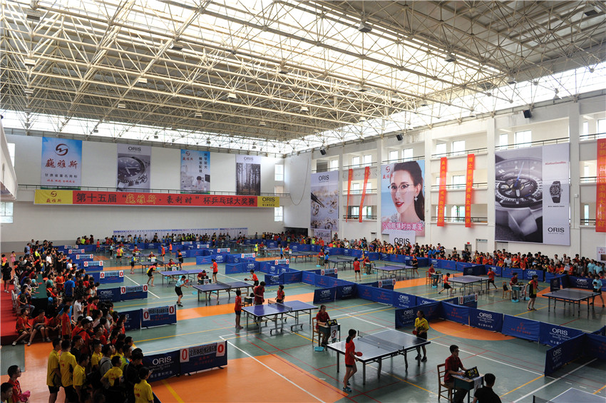 由甘肅省體育總會、巍雅斯名表眼鏡有限公司和瑞士豪利時表主辦,甘肅省乒乓球運動協(xié)會承辦,蘭州城市學(xué)院、蘭州晨報協(xié)辦的“全民健身,與時俱進(jìn)”第十五屆“巍雅斯?豪利時”杯乒乓球大獎賽,7月18日在蘭州城市學(xué)院培黎校區(qū)體育館拉開帷幕。來自95個俱樂部,250多支代表隊的1200多名運動員,參加所在組別的團體和單打比賽,在享受乒乓快樂的同時,向 110多個獎項展開激烈角逐,向高達(dá)近8000元的冠軍大獎發(fā)起沖擊。
