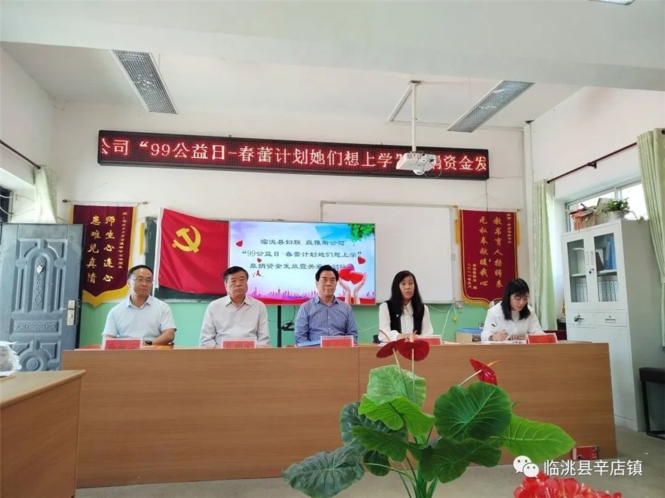 “小康大業(yè),人才為本,人才強(qiáng)國(guó)、教育興邦?!?月24日下午,在臨洮縣辛店中學(xué)舉行了臨洮縣婦聯(lián)、 巍雅斯“99公益日-春蕾計(jì)劃她們想上學(xué)”募捐資金發(fā)放暨關(guān)愛活動(dòng)儀式。臨洮縣婦聯(lián)主席孫碧蘭 、巍雅斯名表眼鏡有限公司董事長(zhǎng)裴正江、巍雅斯名表眼鏡有限公司副總經(jīng)理裴明宏、辛店鎮(zhèn)人民政府副鎮(zhèn)長(zhǎng)鄧小英、辛店中學(xué)校長(zhǎng)孫新華出席了儀式。