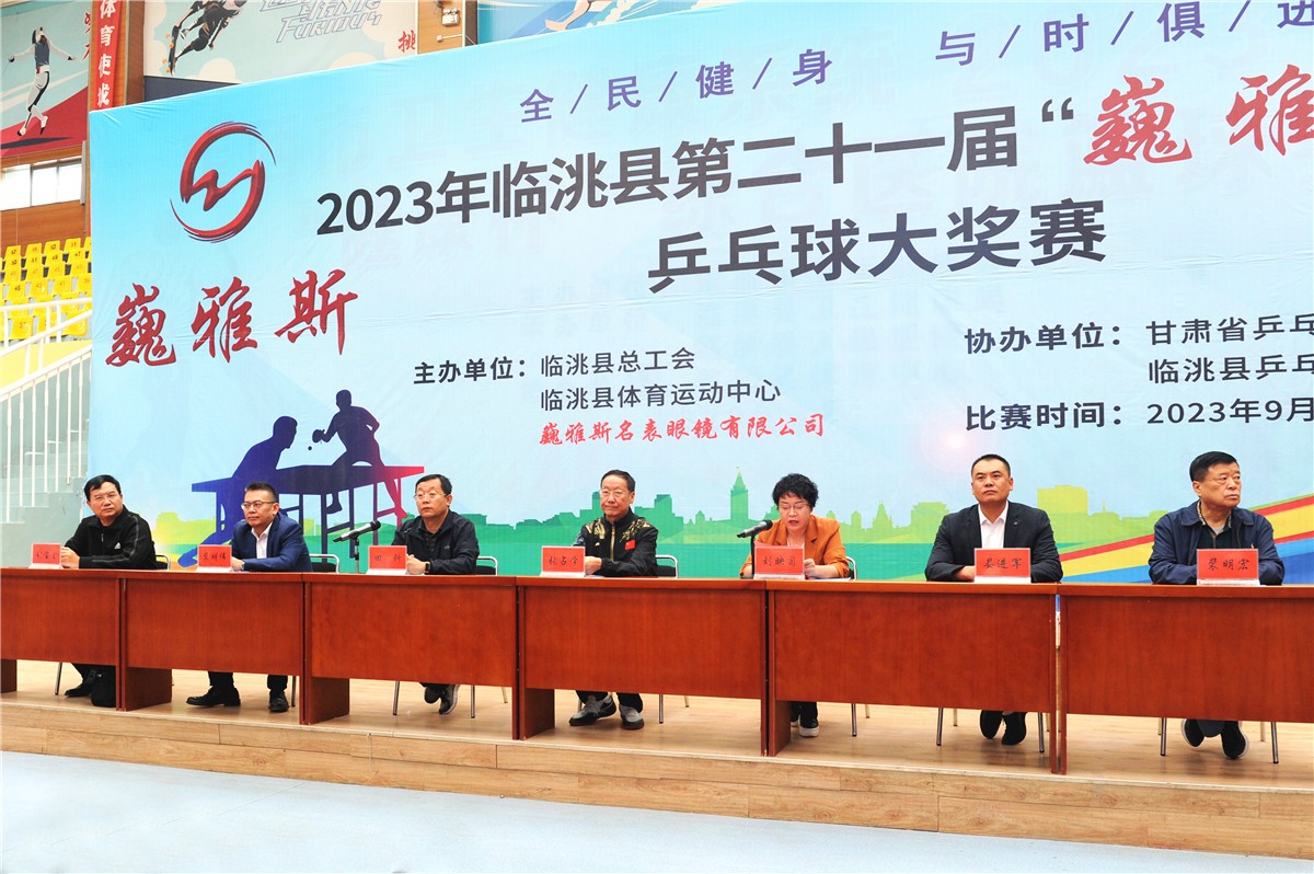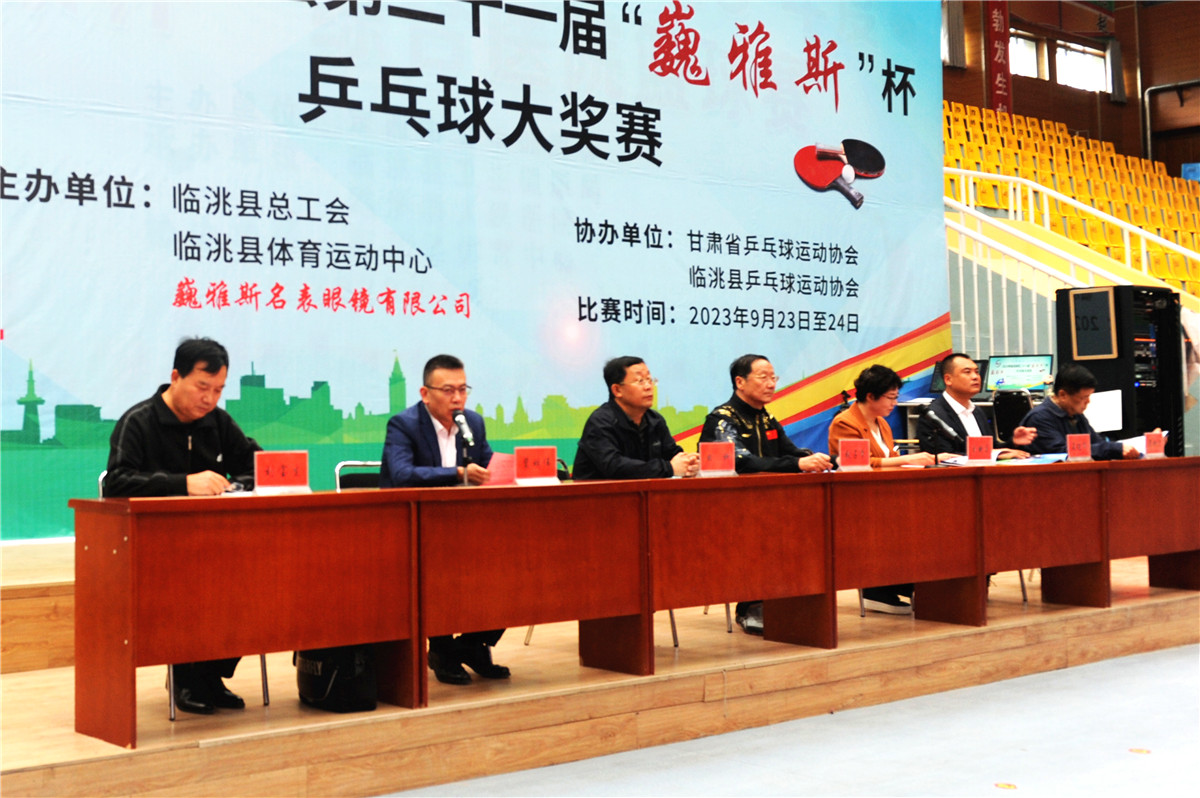 甘肅省教育廳后勤中心主任、甘肅省乒乓球運(yùn)動協(xié)會副會長張占學(xué)、臨洮縣人大常委會副主任、臨洮縣總工會主席劉映菊、巍雅斯名表眼鏡有限公司總裁裴明偉、臨洮縣總工會常務(wù)副主席田科、臨洮縣體育運(yùn)動中心主任晏進(jìn)軍、巍雅斯名表眼鏡有限公司總裁裴明宏、臨洮縣乒乓球協(xié)會主席劉寶生等來賓參加開幕式。