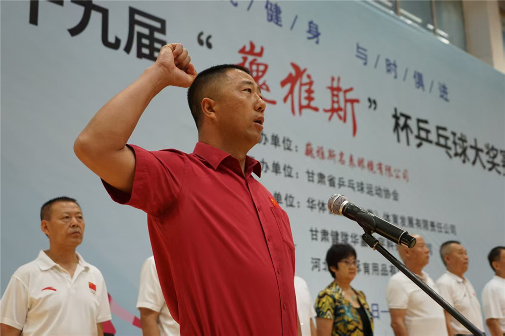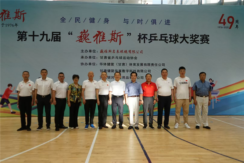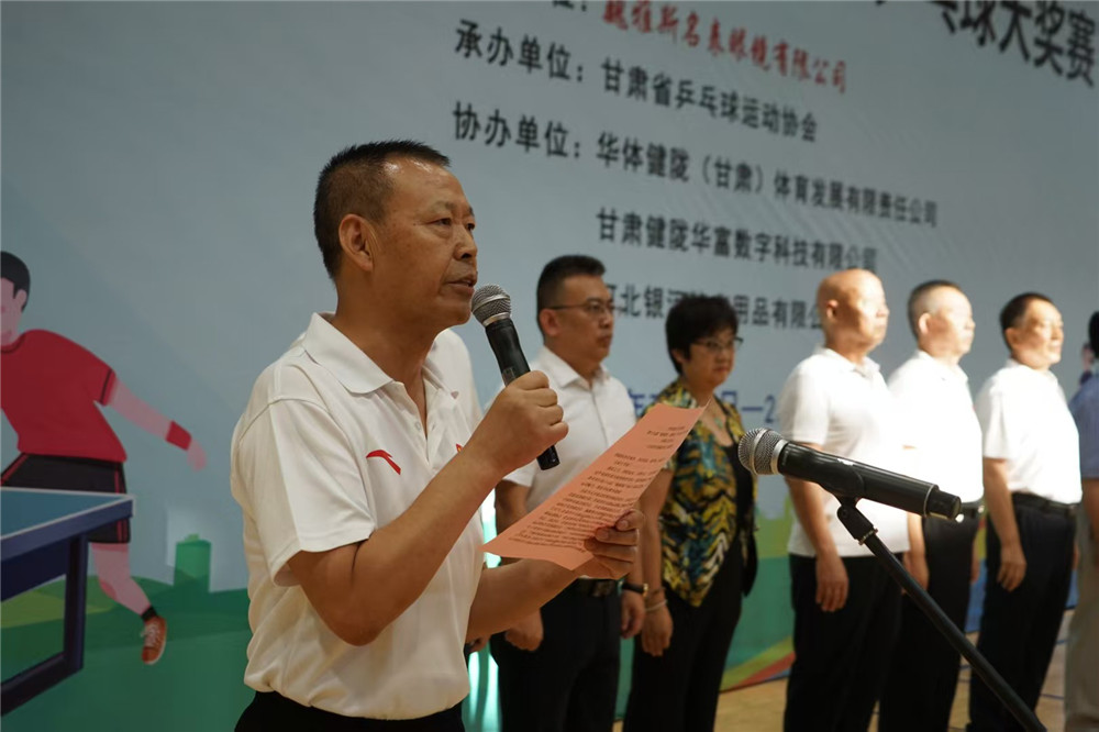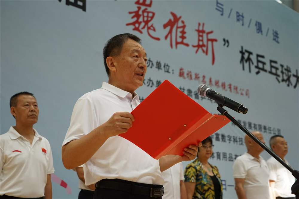 甘肅省乒乓球運動協(xié)會顧問任燕順,中國鐘表商會副會長、甘肅省眼鏡協(xié)會原會長、甘肅省乒乓球協(xié)會名譽副會長、巍雅斯名表眼鏡有限公司董事長裴正江,甘肅省乒乓球運動協(xié)會會長韓力,甘肅省乒乓球運動協(xié)會黨支部書記苗發(fā),全聯(lián)房地產(chǎn)商會黨委副書記、甘肅省城建商會黨委書記、甘肅省乒乓球運動協(xié)會名譽副會長、華富信息集團董事長陳啟建,甘肅省愛國擁軍促進會常務副會長、甘肅省乒乓球運動協(xié)會副會長、蘭州市籃球運動協(xié)會主席、蘭州藍酒實業(yè)集團董事長宗榮,青海省乒乓球運動協(xié)會副主席高麗嚴,寧夏自治區(qū)乒乓球運動協(xié)會副會長張智勇,巍雅斯名表眼鏡有限公司總裁裴明偉,副總裁裴明宏,副總裁、甘肅樺琳房地產(chǎn)開發(fā)有限公司常務副總經(jīng)理楊丁輝及有關領導、運動員、裁判員、教練員、工作人員一起參加了簡樸但氣氛熱烈的大獎賽開幕式。